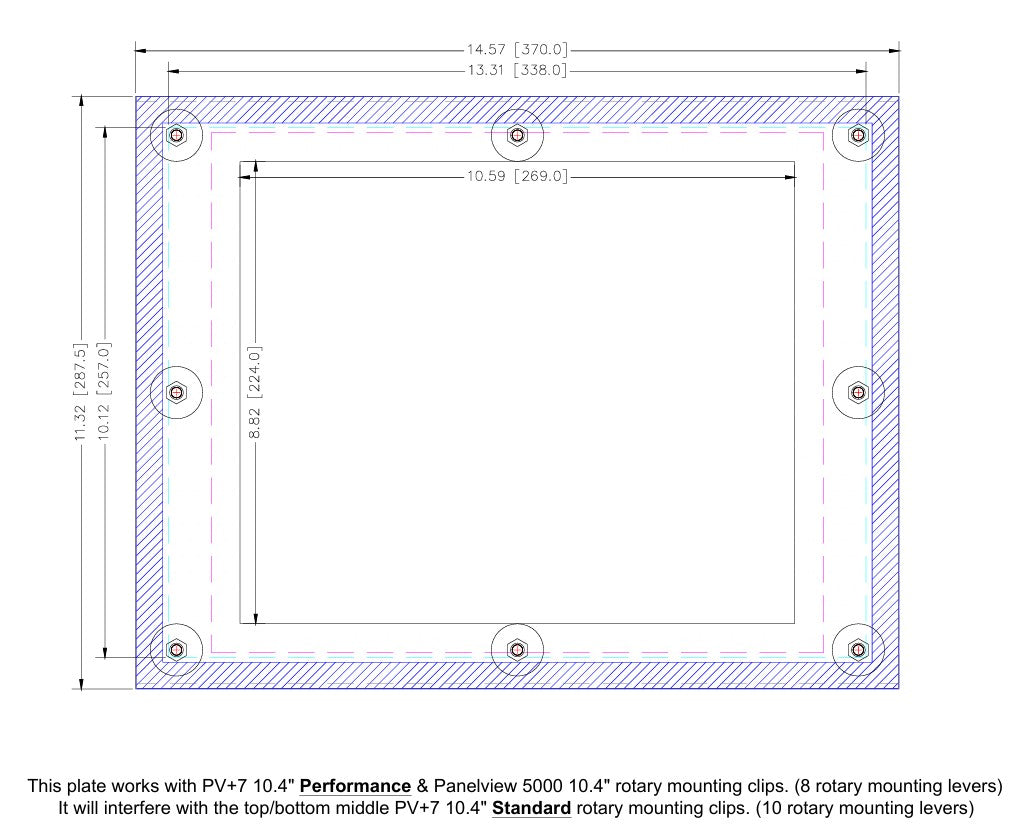 - ***** For PV+7 10.4" Standard HMIs the mounting studs on this plate will interfere with the rotary clips. Use plate D012663 AP3017-2028-IN instead. *****